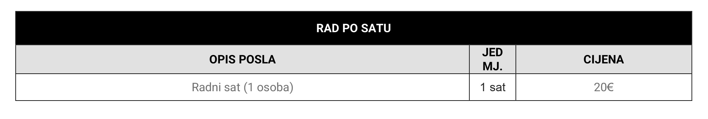 Cjenik usluga omogućuje jednostavan pregled mogućih troškova